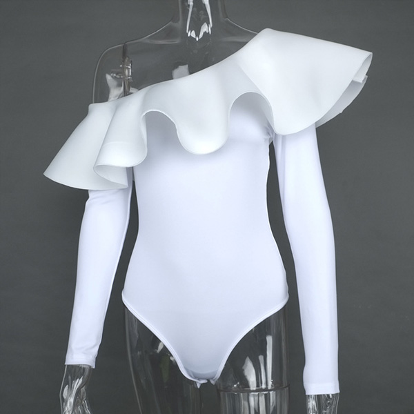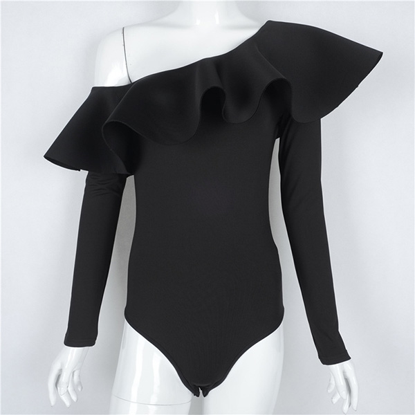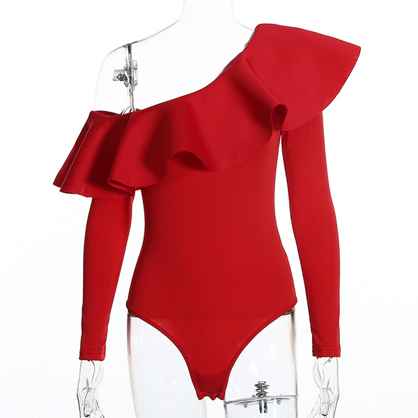 Solid color style,the oblique shoulder and ruffle design make this piece look more alluring.