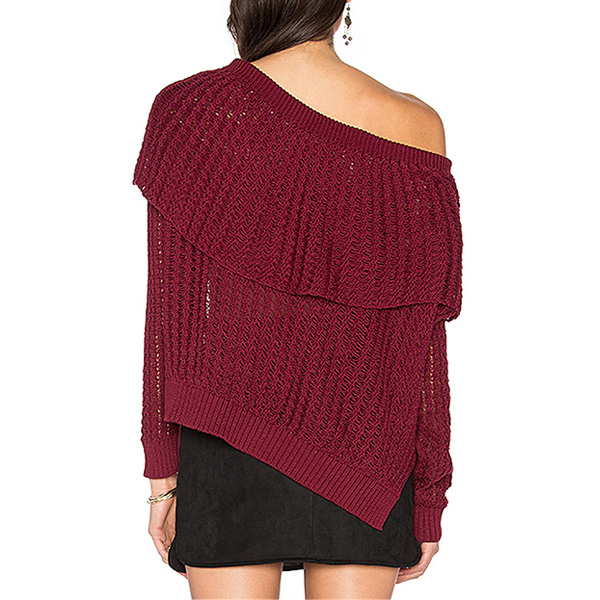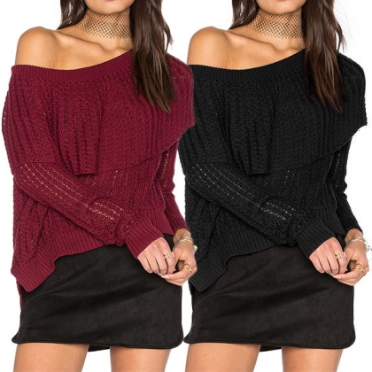 Wow,such a chic and sexy sweater. Solid color style,its oblique shoulder and ruffle design make it look so distinctive