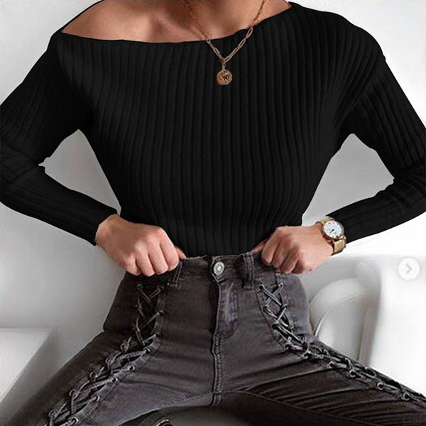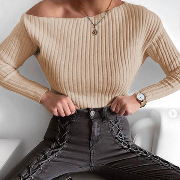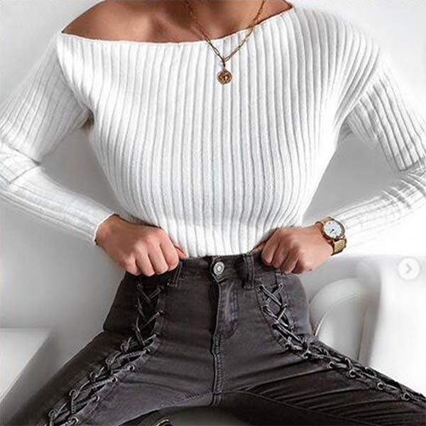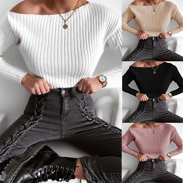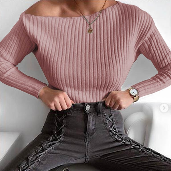 This knit top comes with a solid color,the oblique shoulder design can lend you a dash of sexy and feminine flavor,