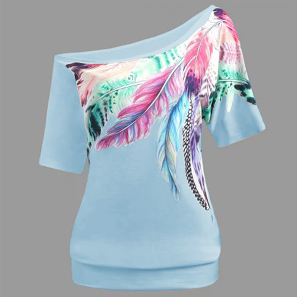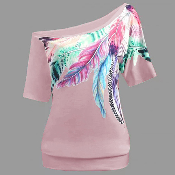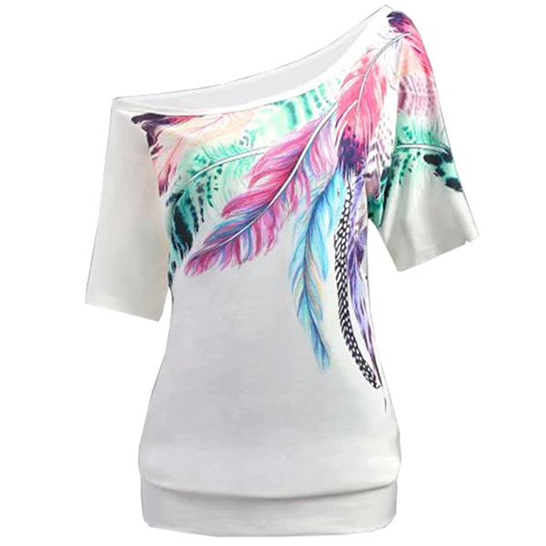 You can count on this t-shirt to achieve for a cozy yet sexy style. The oblique shoulder and feather