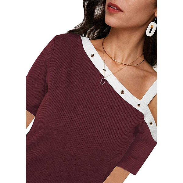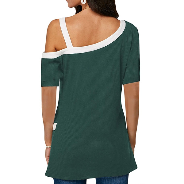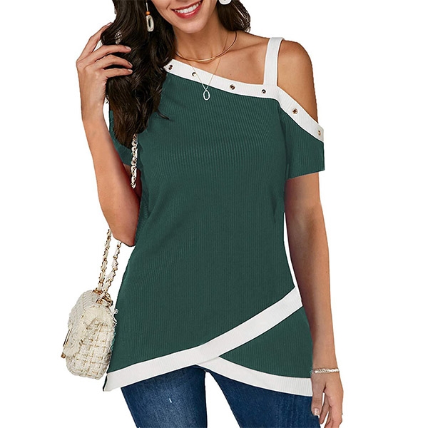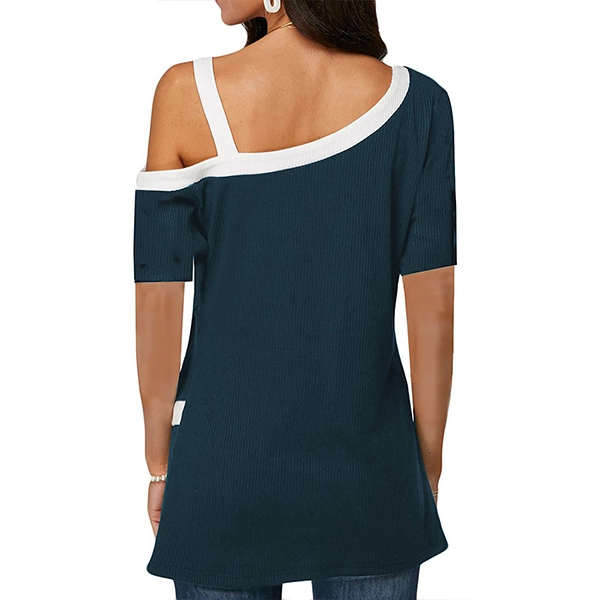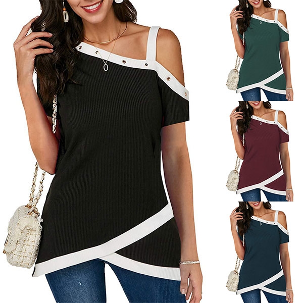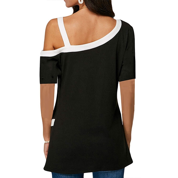 knitted fabric,which can promise you a comfortable day. Moreover,the oblique shoulder,irregular hem