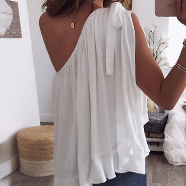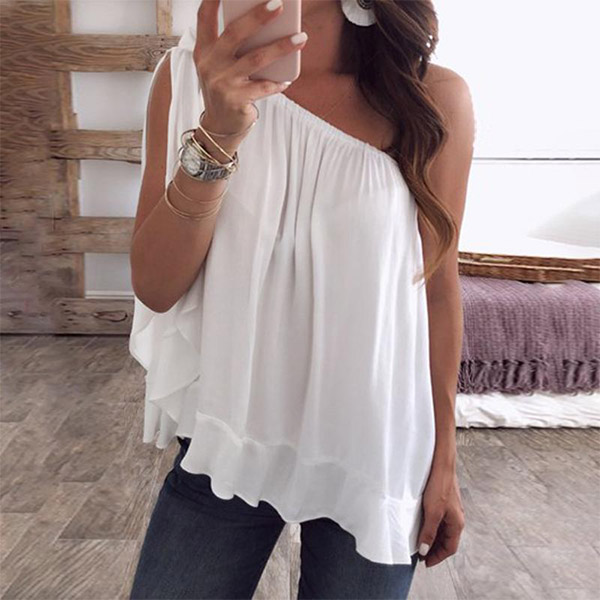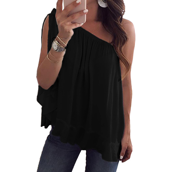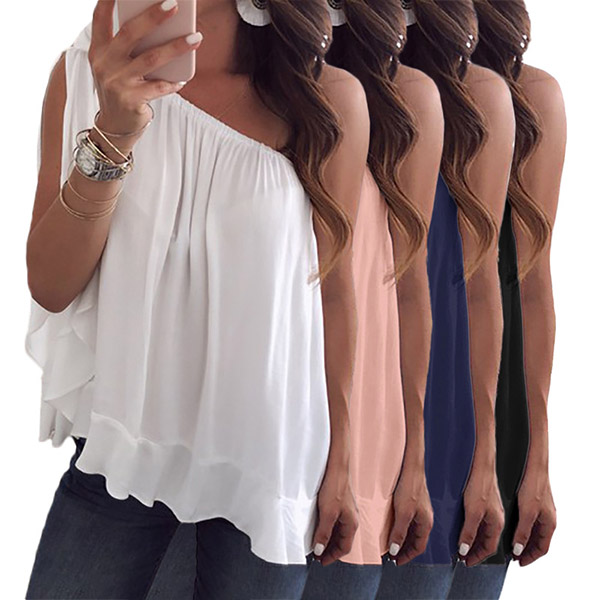 Sexy Oblique Shoulder Sleeveless Loose Chiffon Top