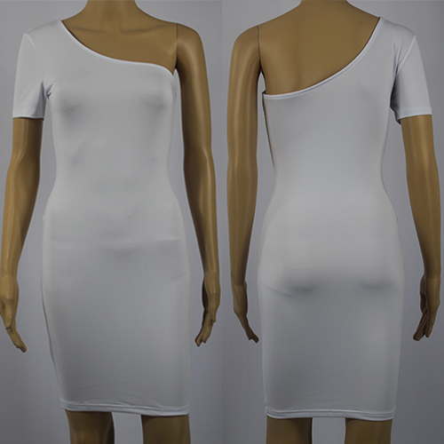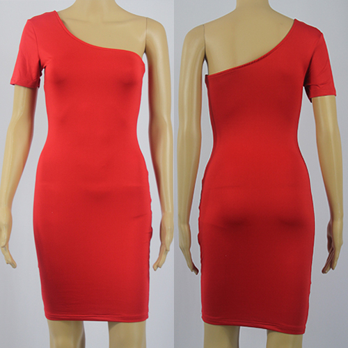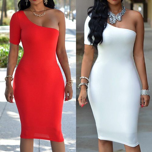 If invited to a party,you can make your eyes focused on this dress. Its oblique shoulder and fit silhouette