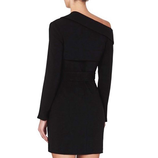 yet flattering black tone,the oblique v-neck design makes this piece look so sexy and distinctive.