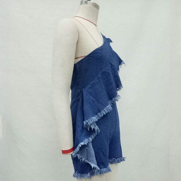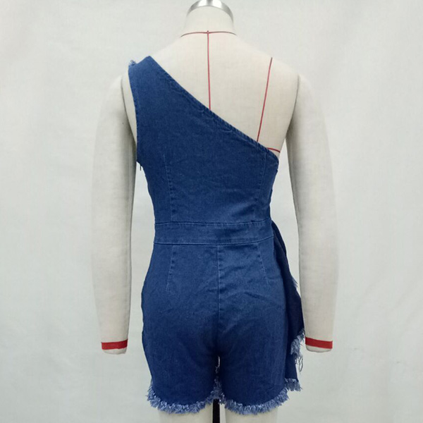 I promise you can grab more attention when you wear this denim romper! One-shoulder design makes