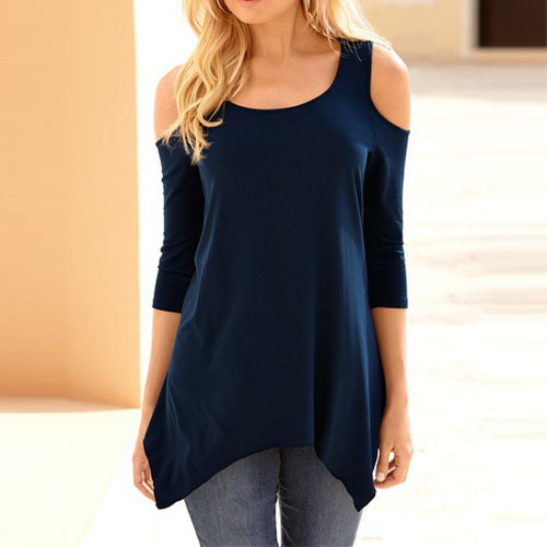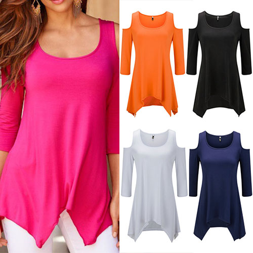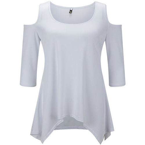 sleeve,round neck and an irregular hem,chic and stylish,while its off-shoulder design for some more extra appeal. This little item is