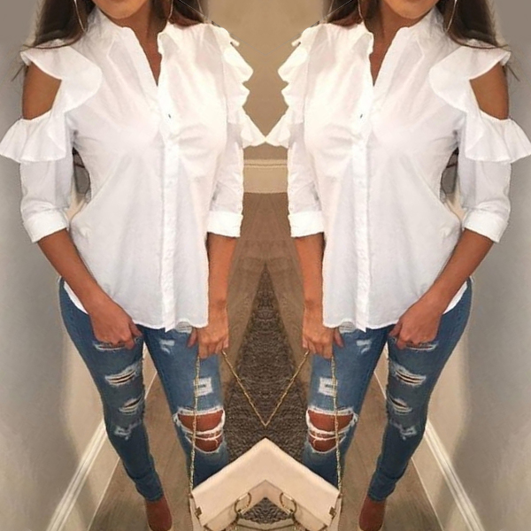 POLO collar and a clean silhouette,which can bring your style to a new level. Moreover,the off-shoulder