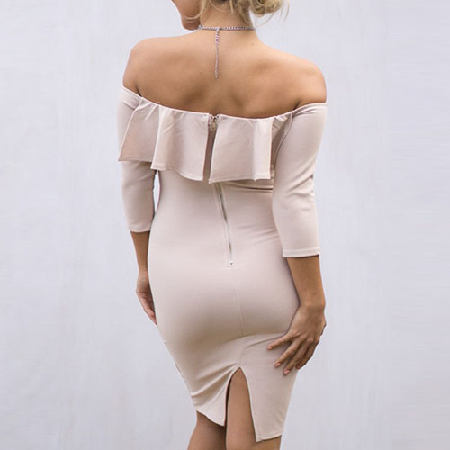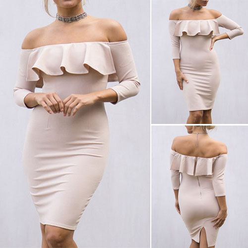 No need to worry about what to wear for the parties if you have this dress on hand. Solid color style,its off-shoulder and