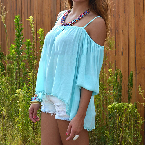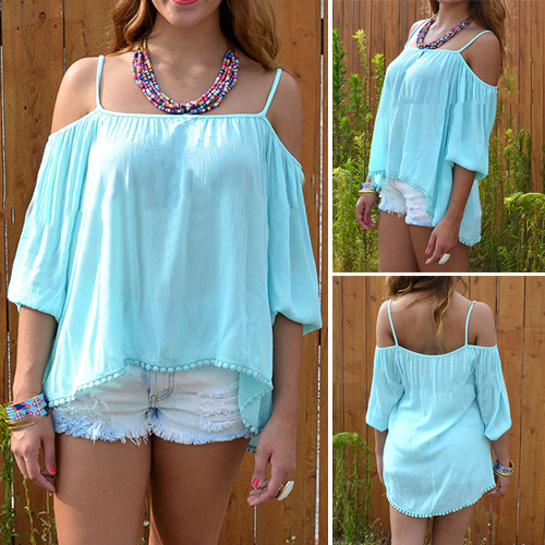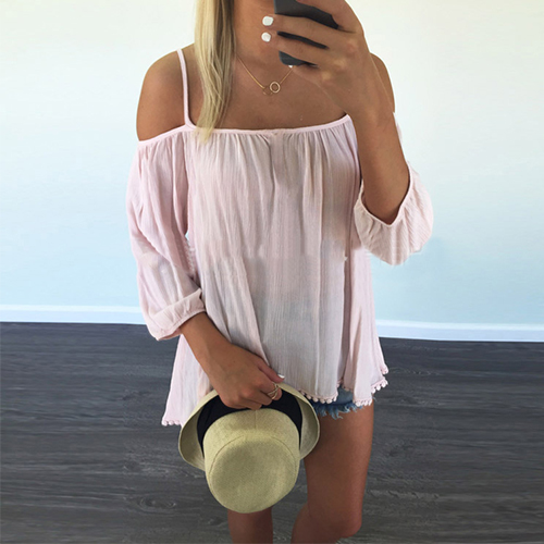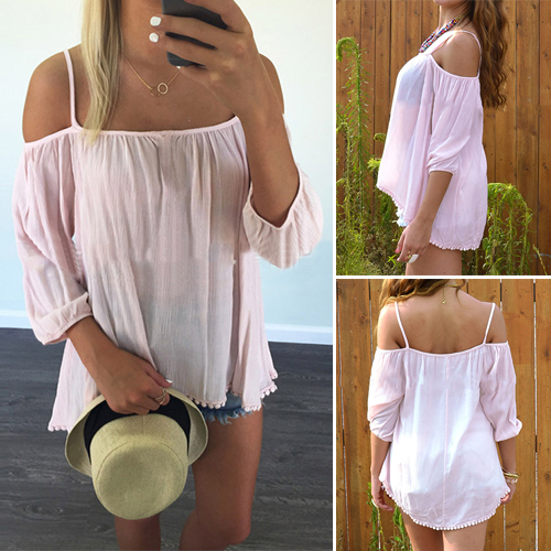 Sexy Off-shoulder 3/4 Sleeve Solid Color Sling Chiffon Tops