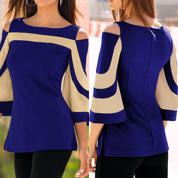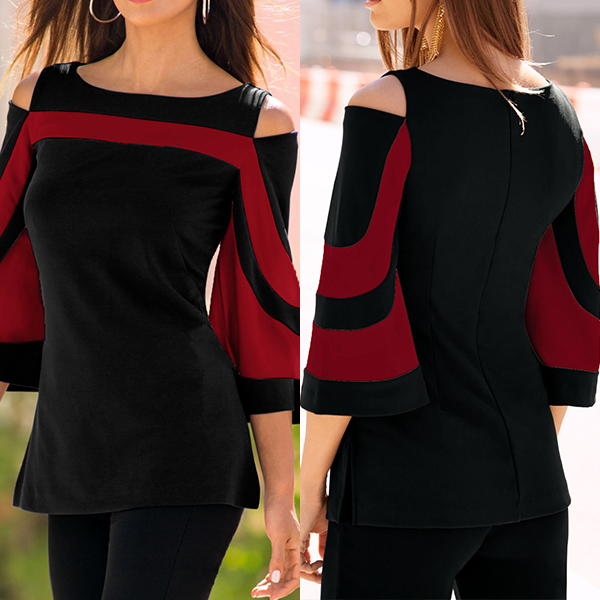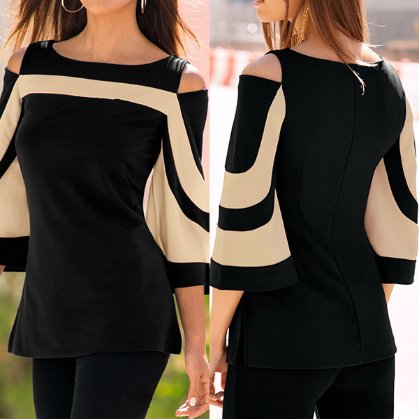 You can boost your daily style by slipping into this wonderful t-shirt. Contrast color style,the off-shoulder and 3/4