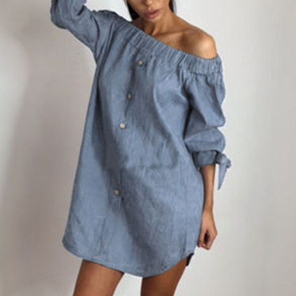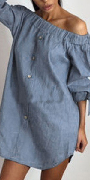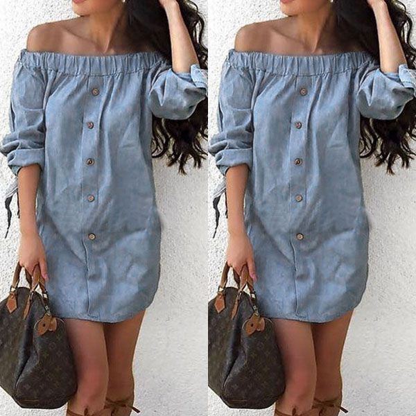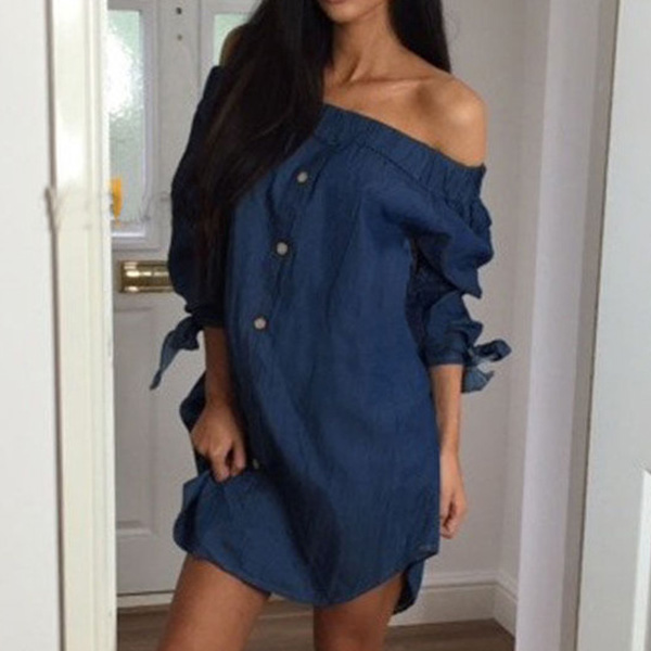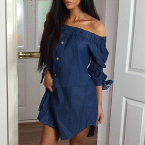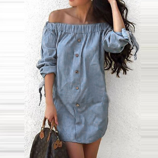 Sexy Off-shoulder Boat Neck 3/4 Sleeve Denim Dress