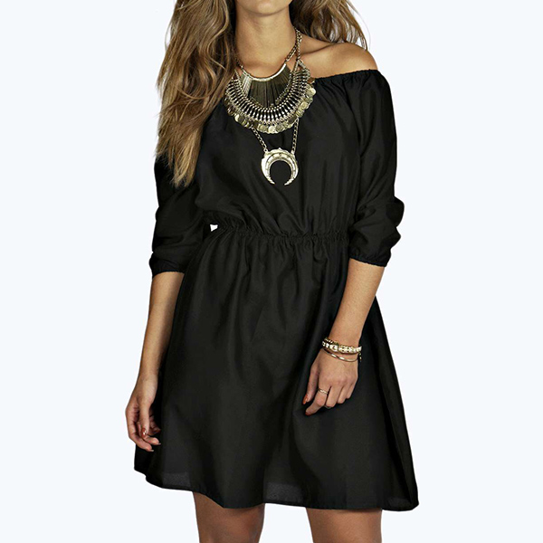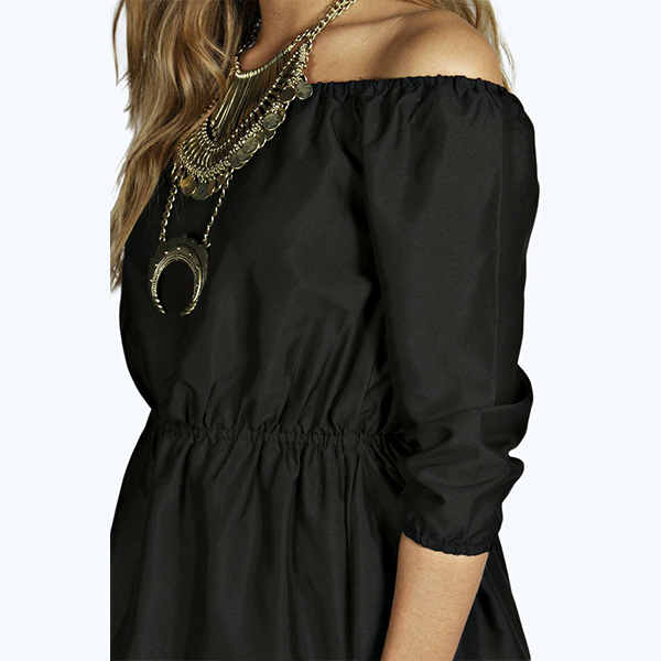 accompanied with off-shoulder wide neckline,3/4 sleeve and an elastic waist,sexy,delicate and charming.