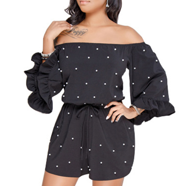 You can have a sexy and charming dating look when you wear this romper! The off-shoulder boat neck