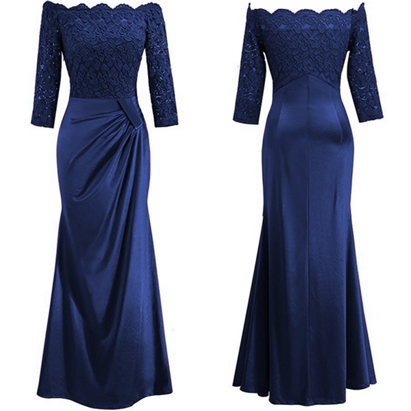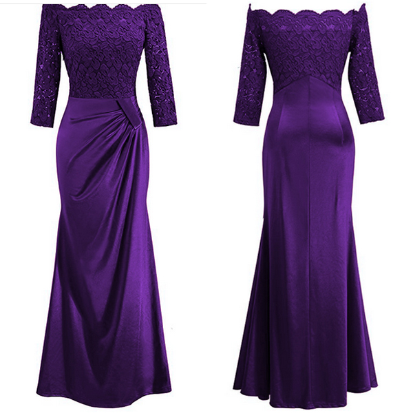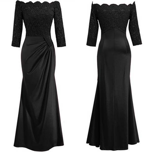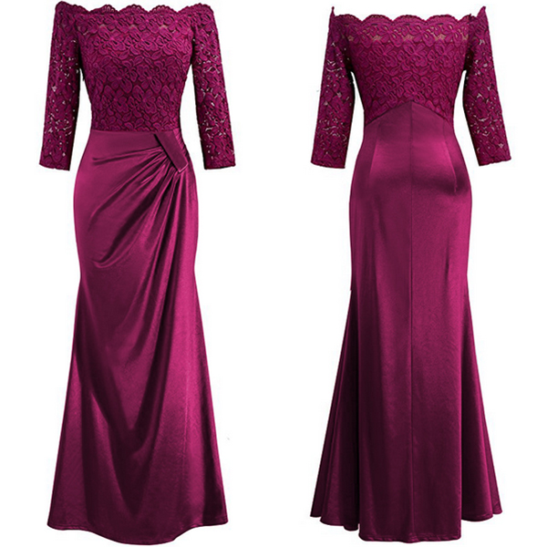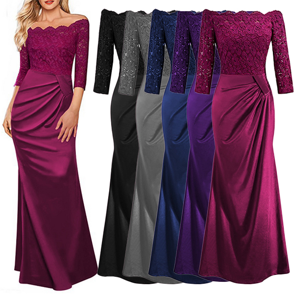 an elegant and noble image,while the off-shoulder wide neckline and lace spliced details will further showcase your
