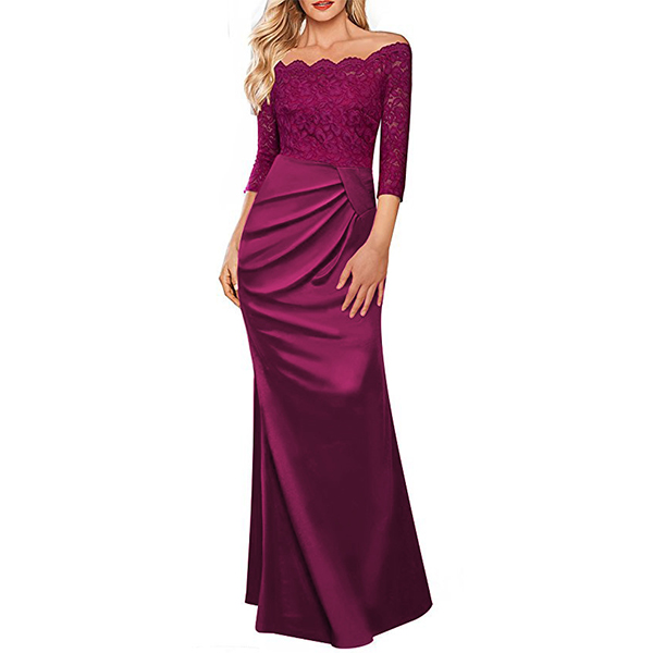 its off-shoulder wide neckline and lace spliced design will further highlight your feminine appeal. No matter for the