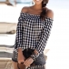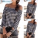 Sexy Off-shoulder Boat Neck 3/4 Sleeve Plaid Top(It falls small)