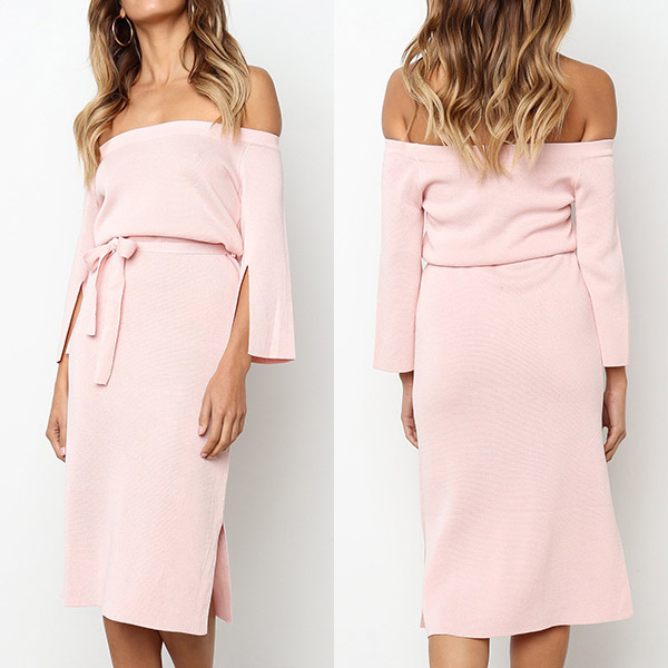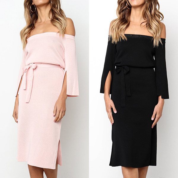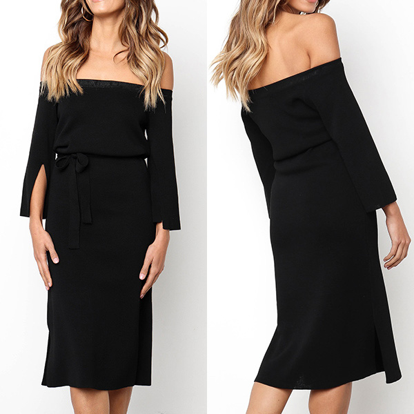 Comes with a solid color,the off-shoulder boat neck,slit 3/4 sleeve and slit hem design make this