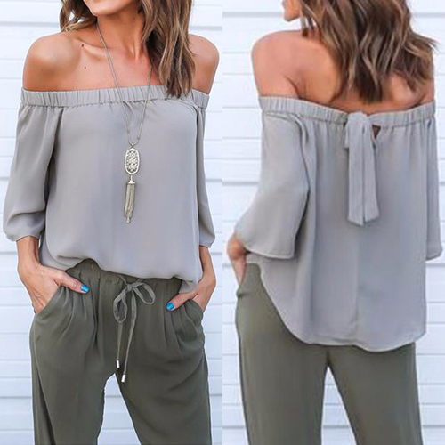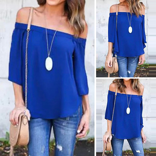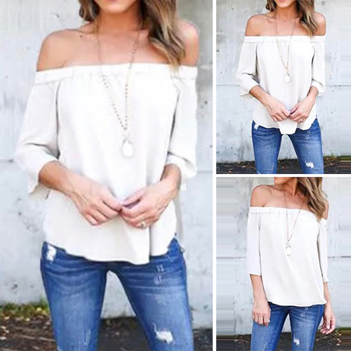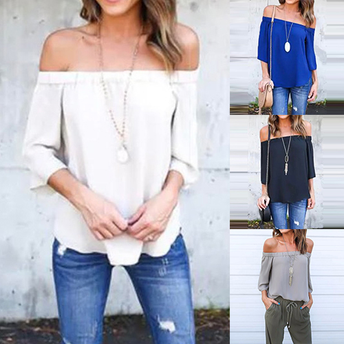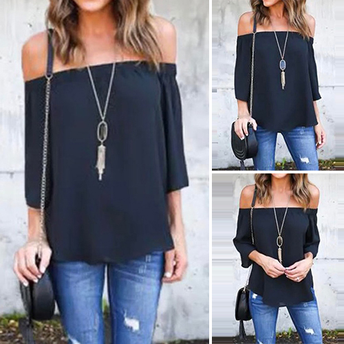 designed with 3/4 sleeve,an off-shoulder wide nbeckline and a relaxed-fit silhouette,this top can keep you cozy yet sexy.