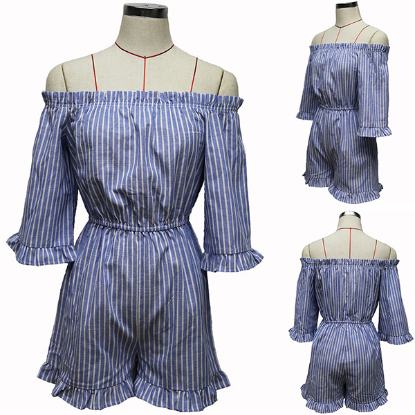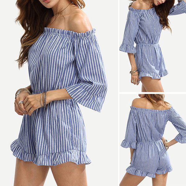 Easy to have a playful and fun day if you slip into this romper. Striped style,accompanied with an off-shoulder wide