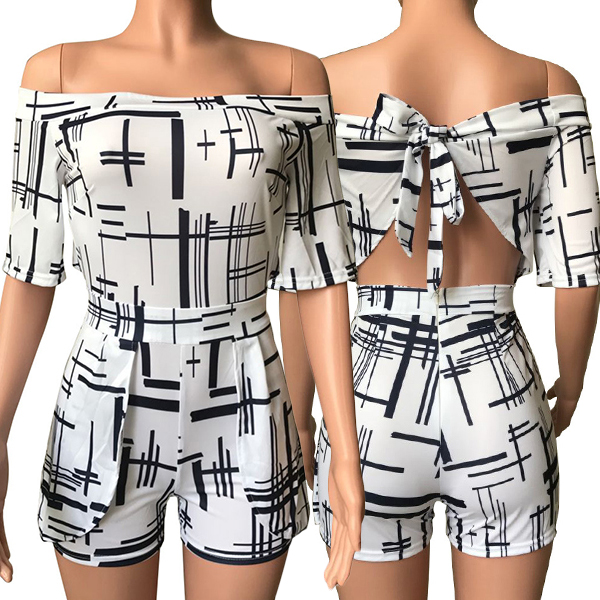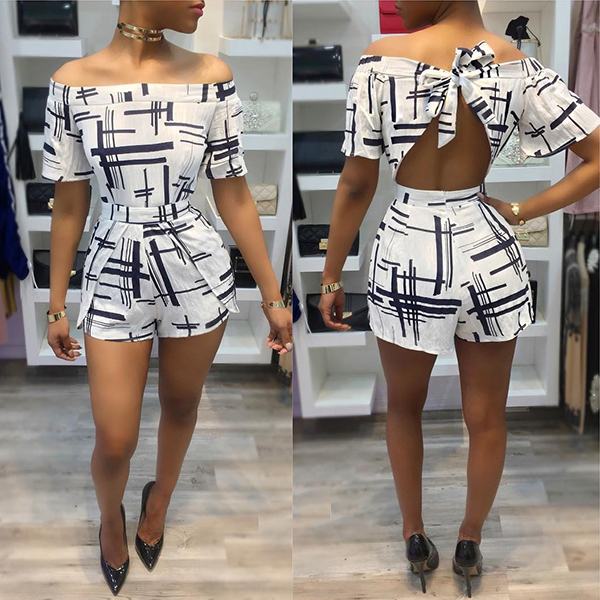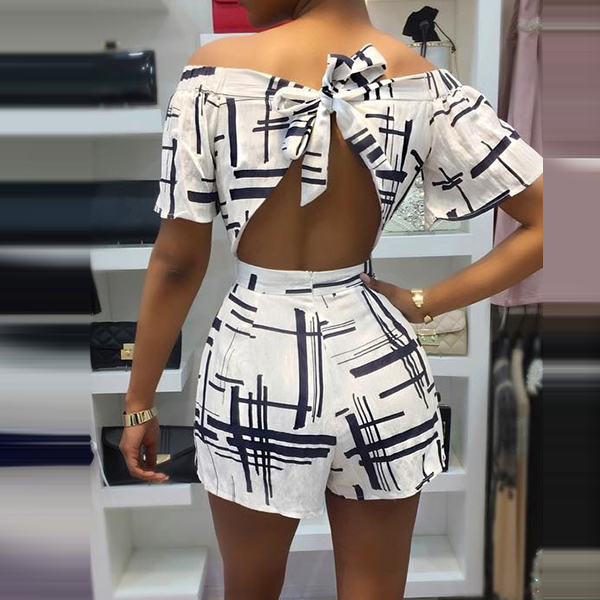 Make your style have an instant boost with this romper. Its chic printed pattern creates a more eye-catching look,while its off-shoulder