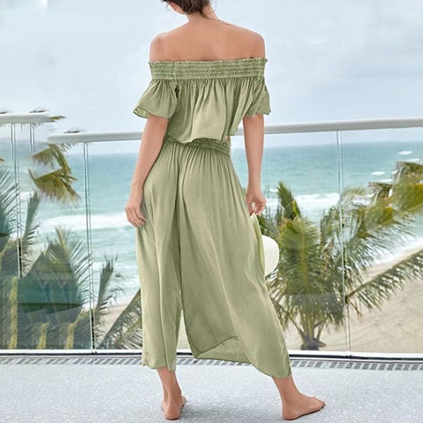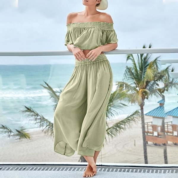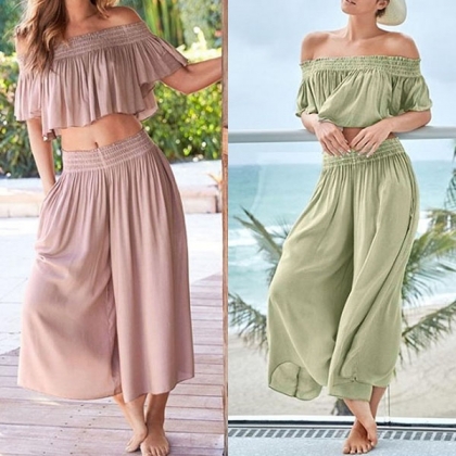 two-piece set. It consists of a crop top and a high waist wide-leg pants,this two-piece set not only