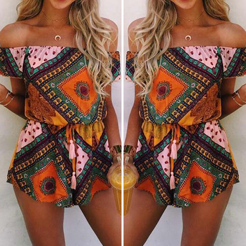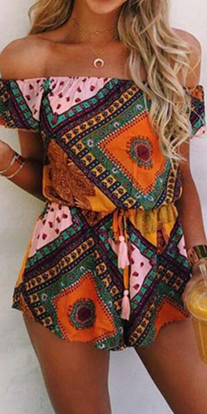 Accentuate your charming summer style through this romper! Features chic and eye-catching printed style,its off-shoulder
