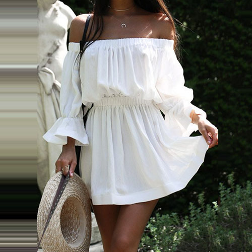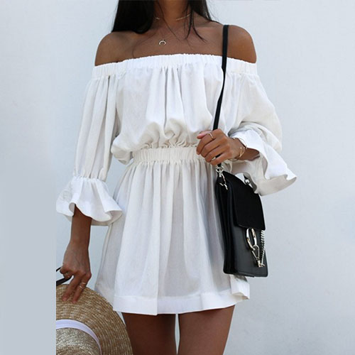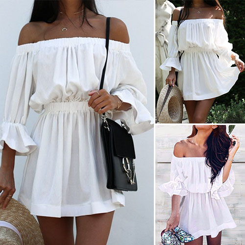 Solid color style,designed with an off-shoulder wide neckline making this dress feminine and attractive,whilst its