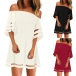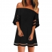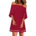 The off-shoulder boat neck and gauze spliced design make this piece look so sexy and attractive.