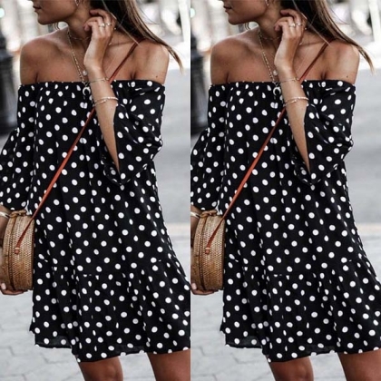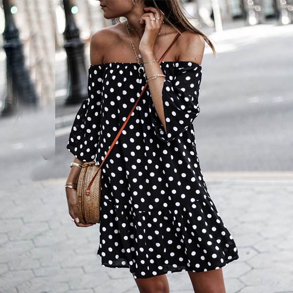 The dots printed details will give you a more playful and eye-catching look,while the half sleeve