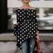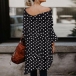 The dots printed details make it look so eye-catching,while the off-shoulder boat neck and