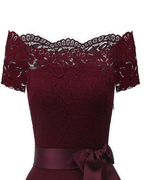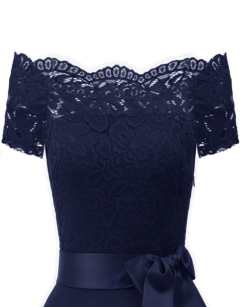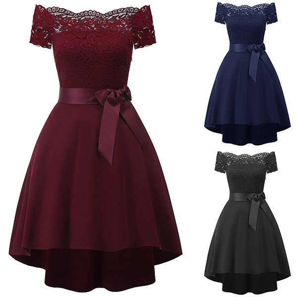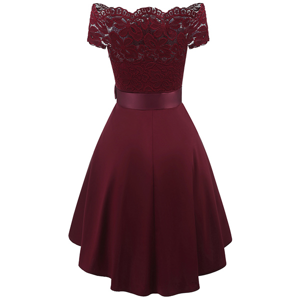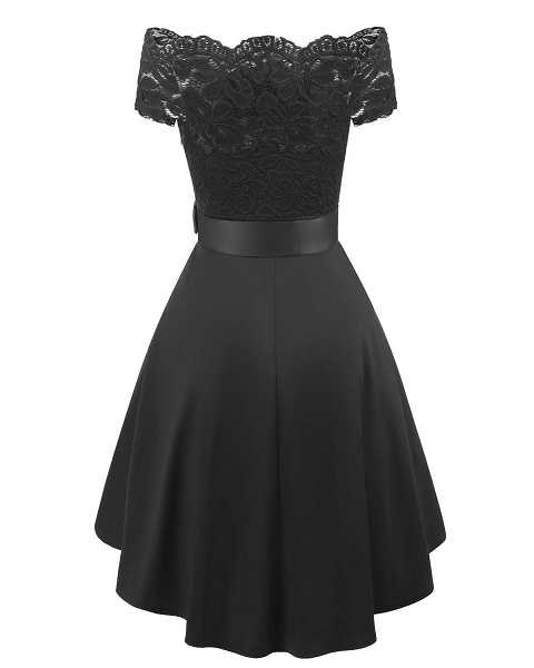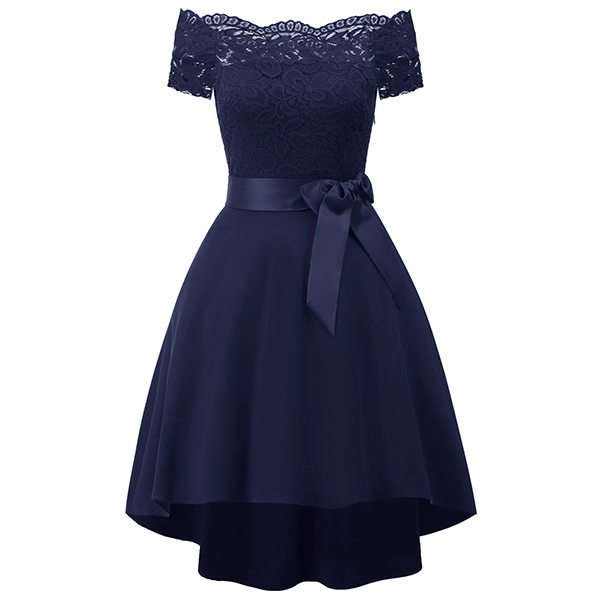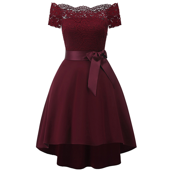 of-shoulder boat neck,high-low hem and lace spliced design will give you an alluring look. Paired with your