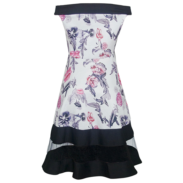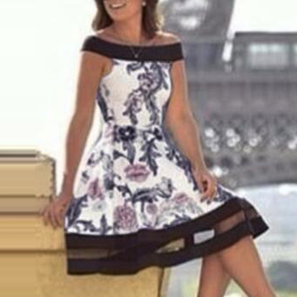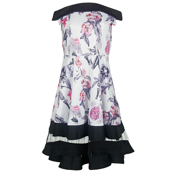 and vibrant floral print,designed with an off-shoulder wide neckline and a high-low hem,this dress can make you look