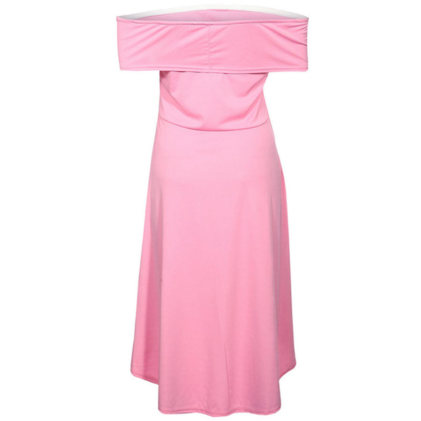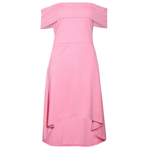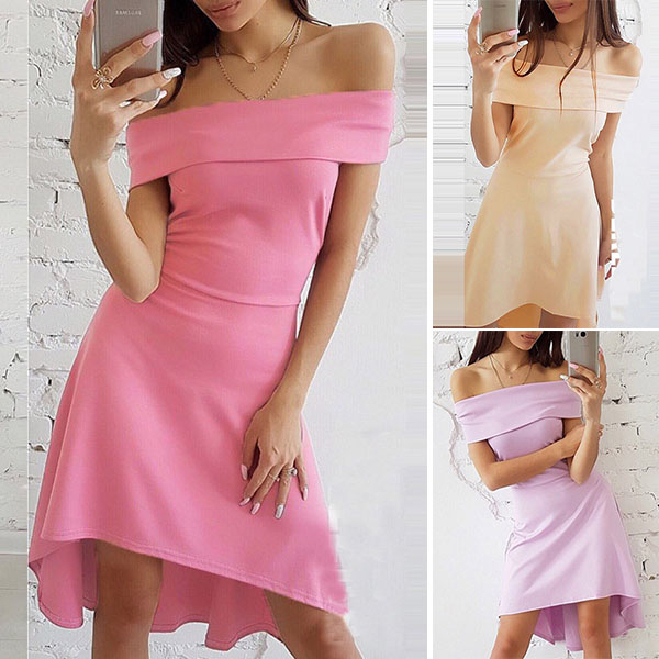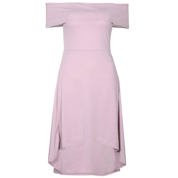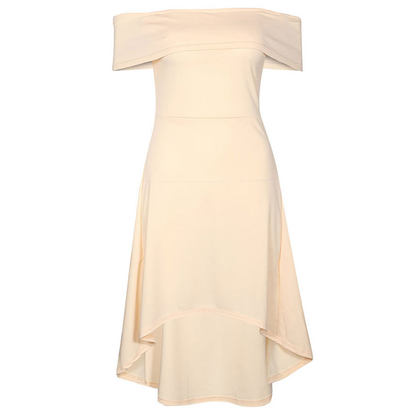 with a solid color,simple yet elegant,while the off-shoulder boat neck and high-low hem design make