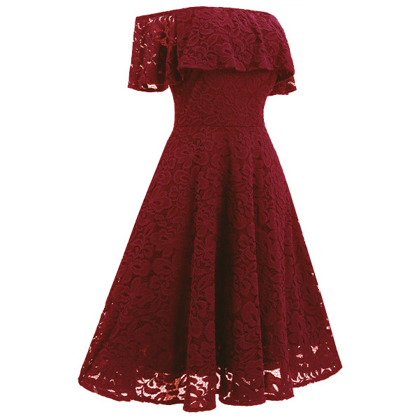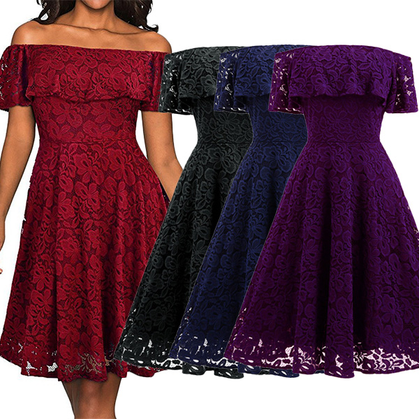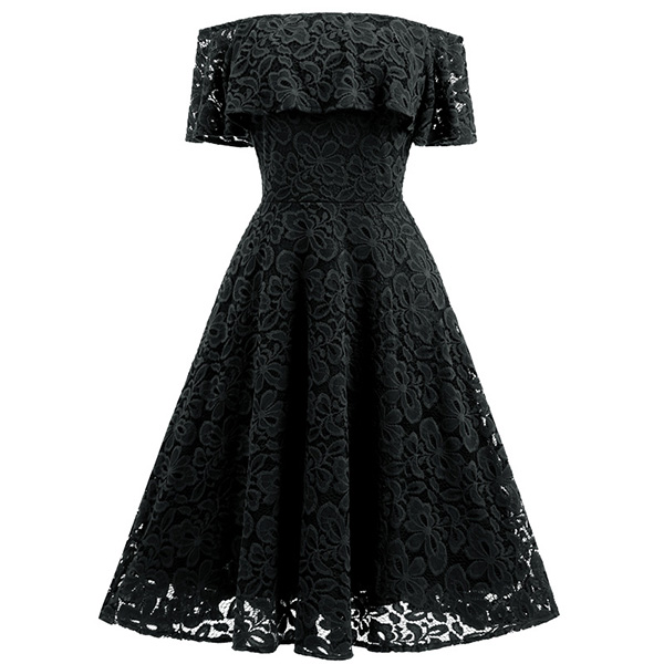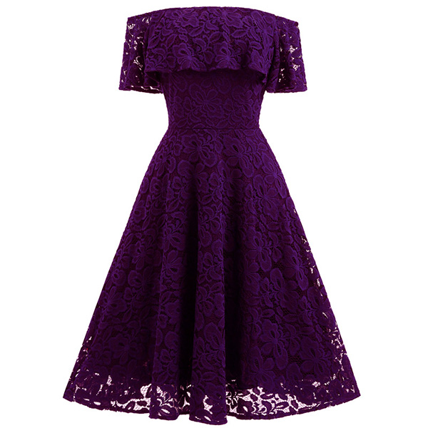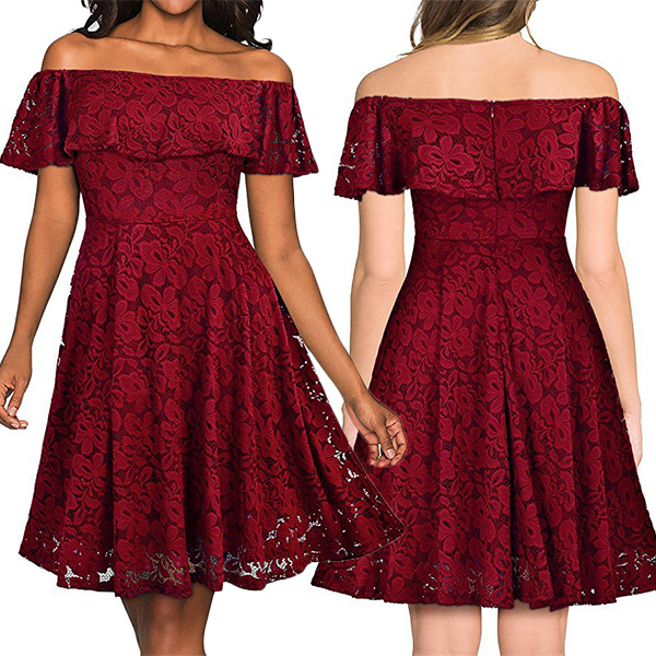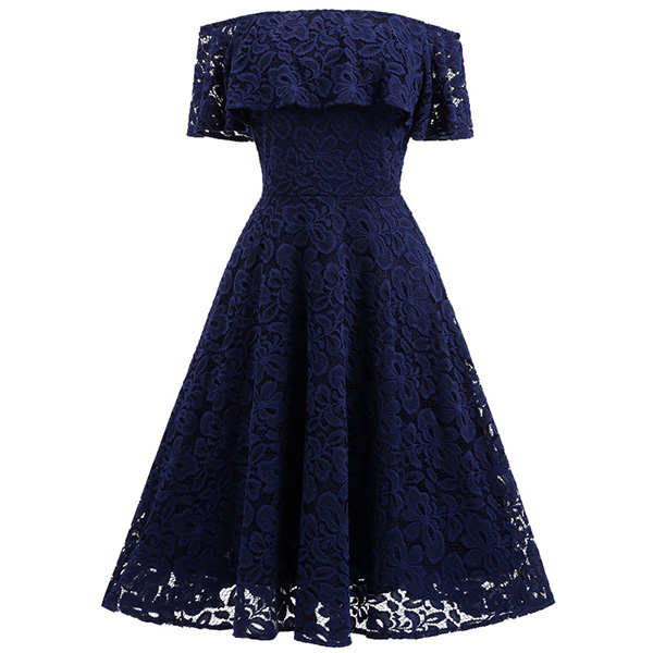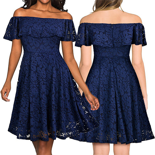 and this pretty lace dress will do exactly that! It is finished with an off-shoulder wide neckline,high waist and a flowing hem,