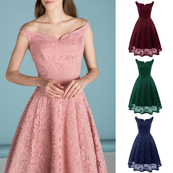 Your elegant temperament and charming feminine appeal will no longer be a secret as long as you slip into this delicate lace dress. Solid color style,the off-shoulder boat neck and high waist design make this piece look so sexy and charming. No need to worry about what to wear for the coming parties and gatherings if you have this dress in your team.