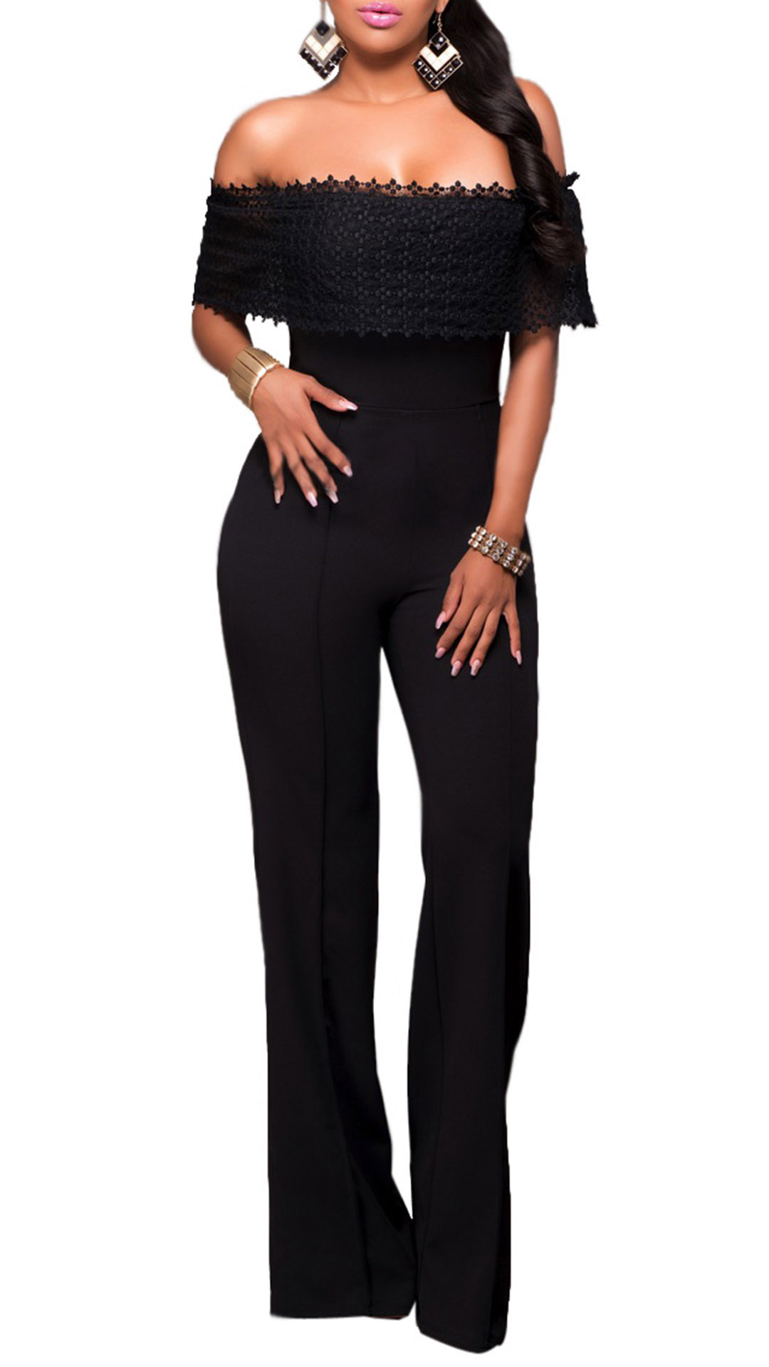 its off-shoulder wide neckline with lace spliced design makes this piece look so sexy and seductive,while its high