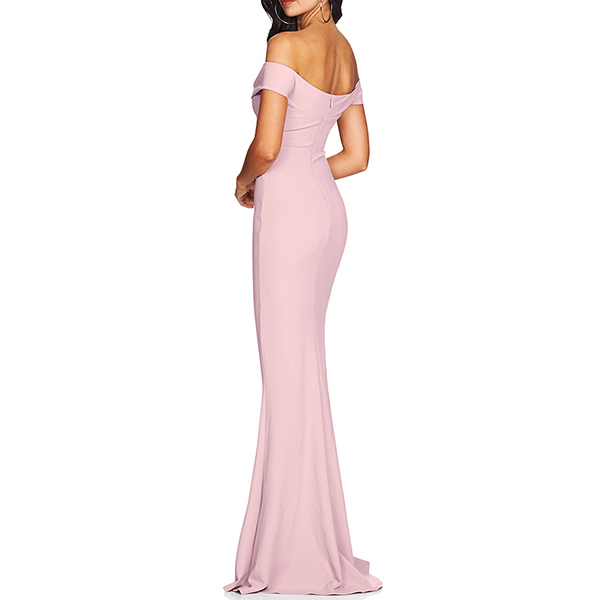 Sexy Off-shoulder Boat Neck High Waist Solid Color Floor-length Evening Dress