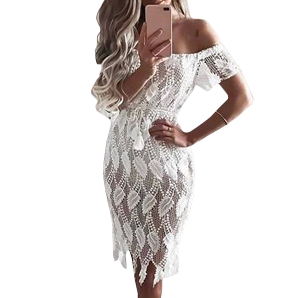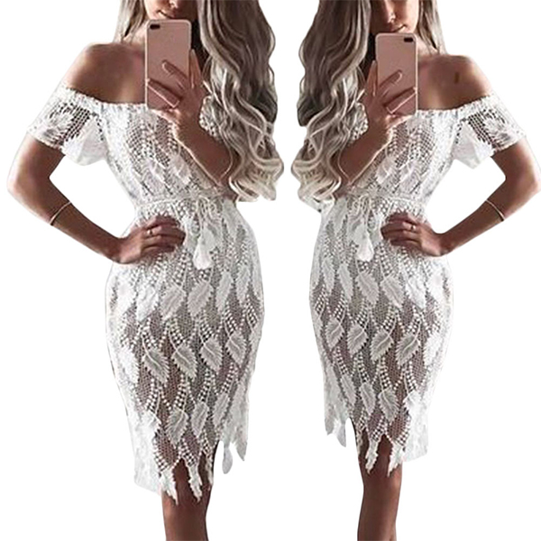 off-shoulder boat neck,fit silhouette and hollow out gauze details make this dress look so alluring. For any parties and