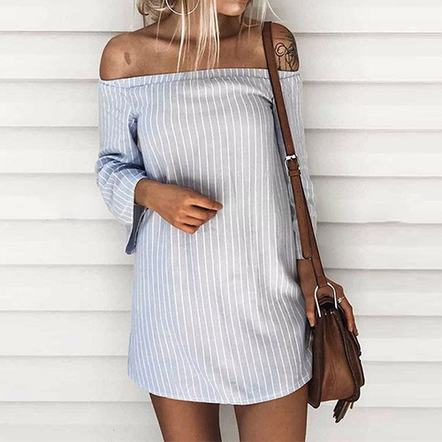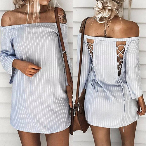 Embrace your feminine side with this dress! Striped style,its off-shoulder wide neckline,hollow out lace-up design