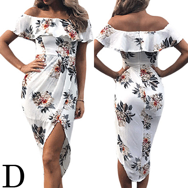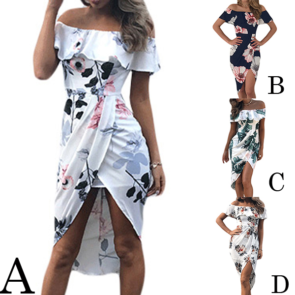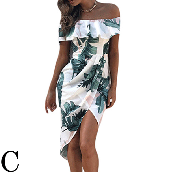 printed pattern,accompanied with an off-shoulder wide neckline and an irregular hem,sexy and seductive. We suggest you
