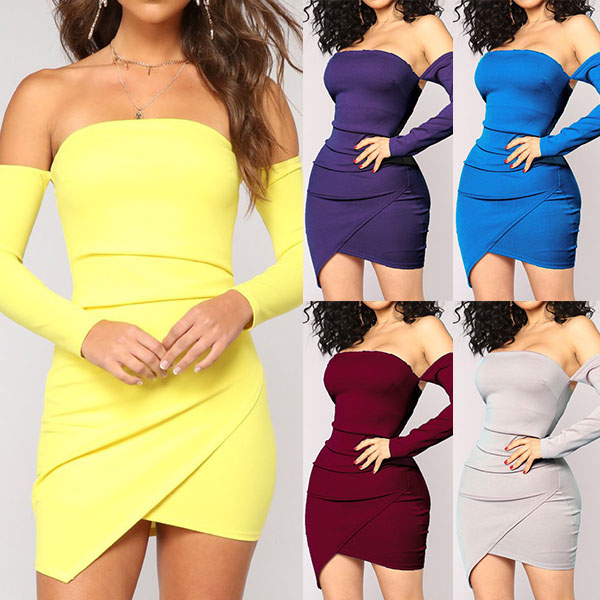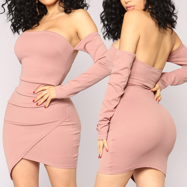 with long sleeve,off-shoulder and an irregular hem,sexy and distinctive. And the fit silhouette design can