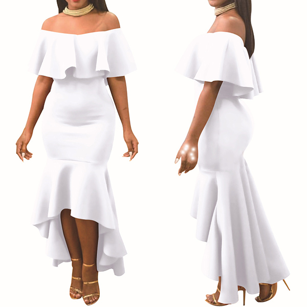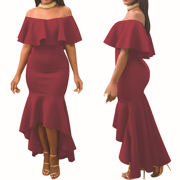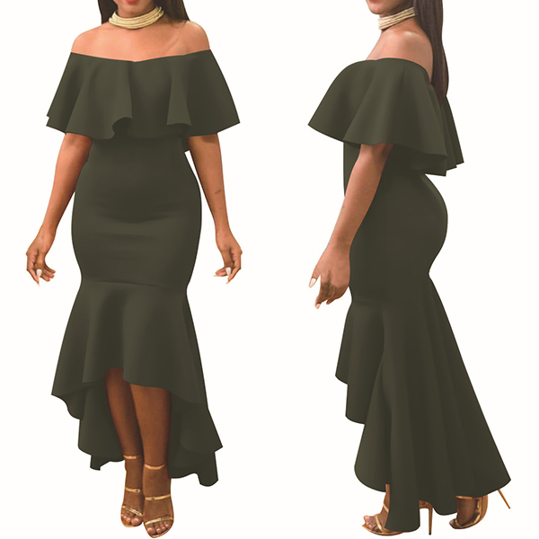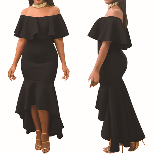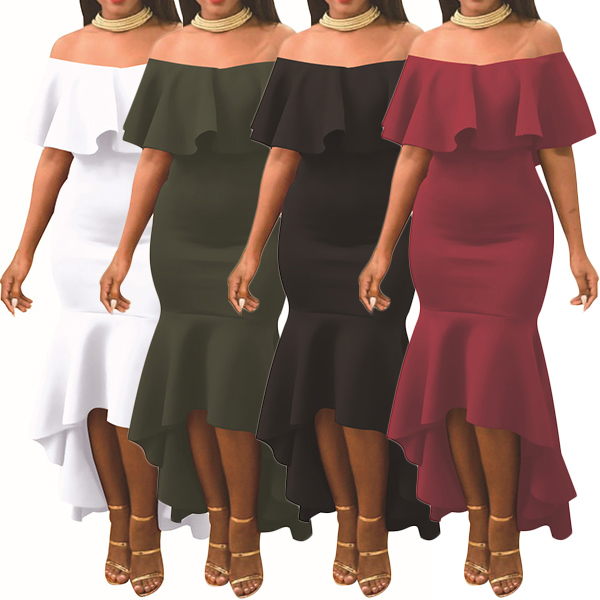This pretty number will do exactly that! Solid color style,its off-shoulder wide neckline,irregular hem and ruffle design