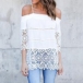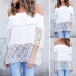 the off-shoulder boat neck and lace spliced design make this piece look so sexy and charming.