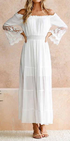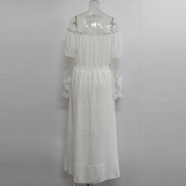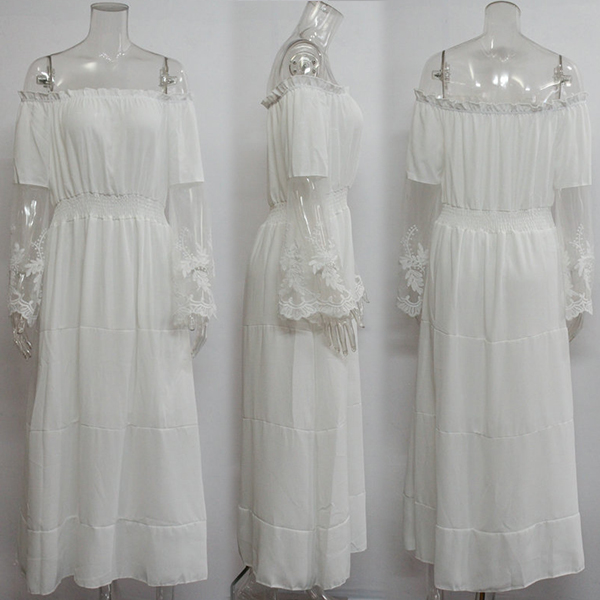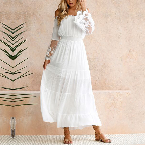 dress. Solid color style,designed with an off-shoulder boat neck,lace spliced