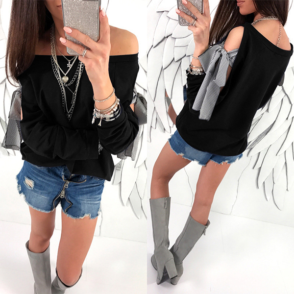 You can count on this wonderful piece to showcase your female appeal. Solid color style,the off-shoulder wide neckline