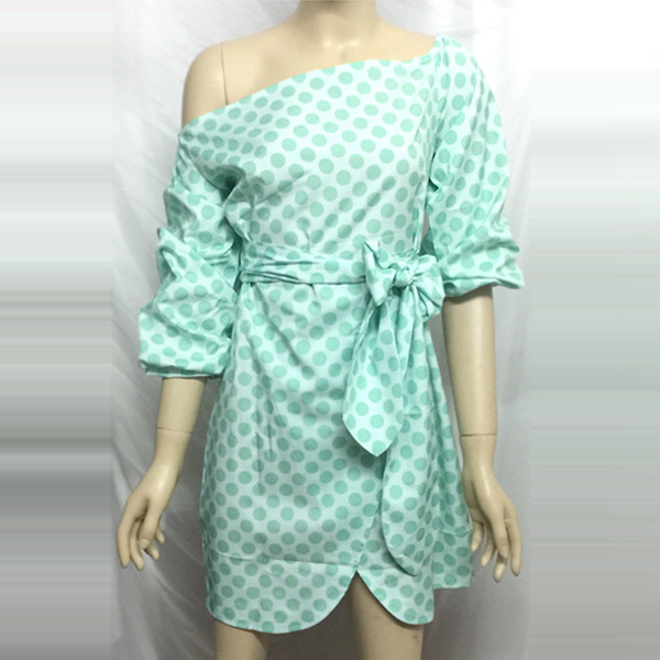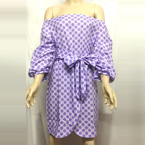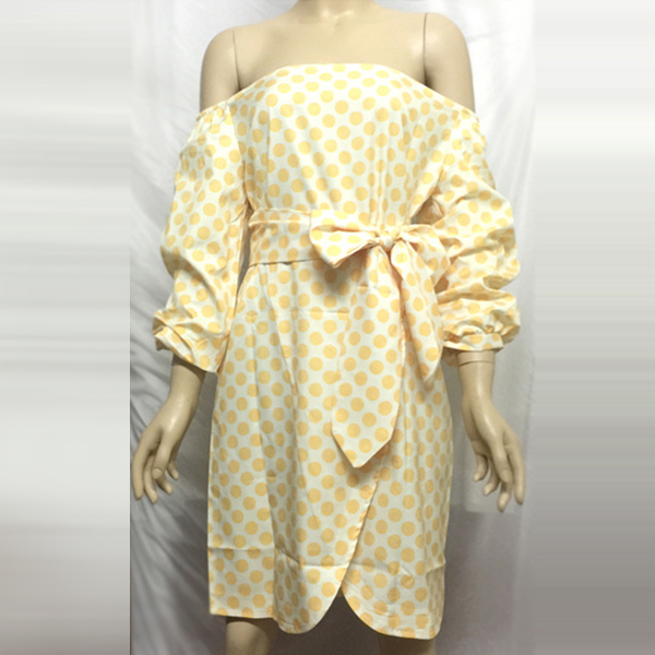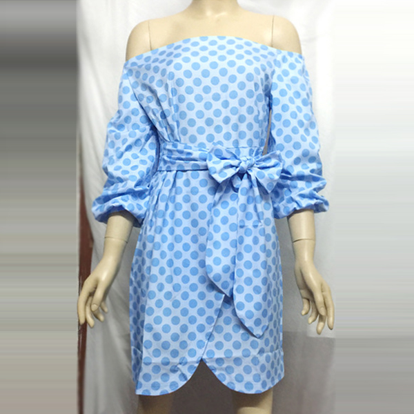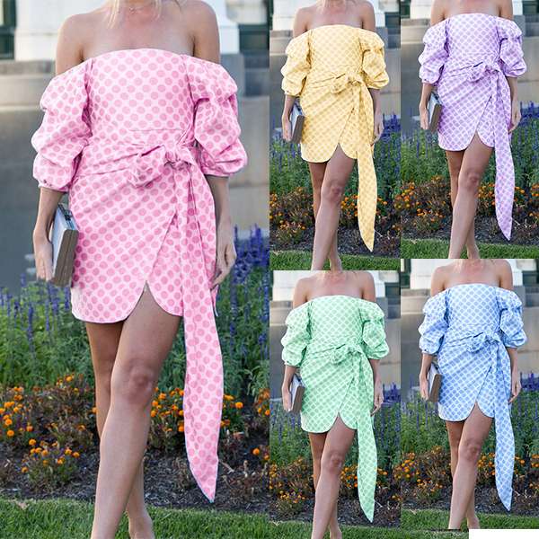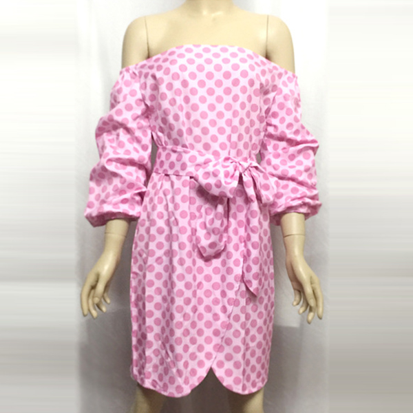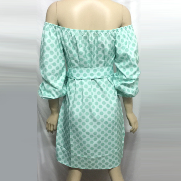 dress. Dots printed design gives you a cute and playful style,with the off-shoulder boat neck,lantern sleeve and waist strap