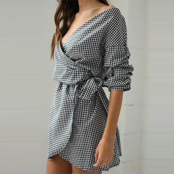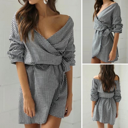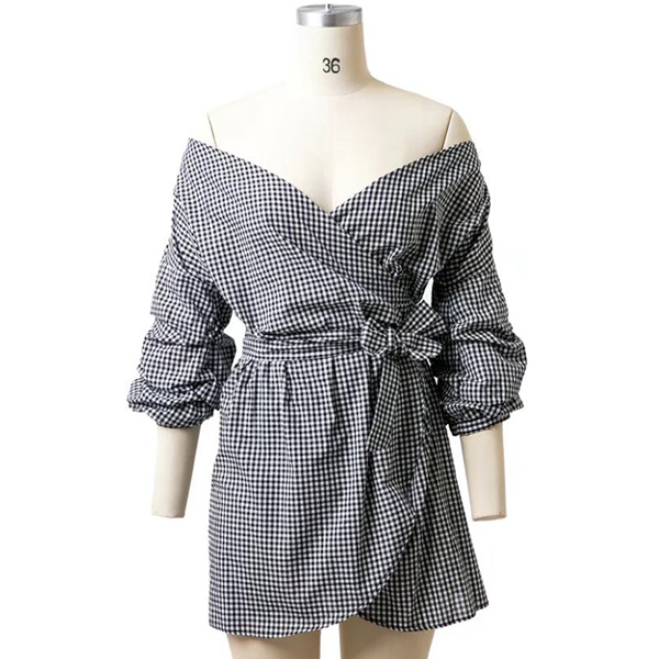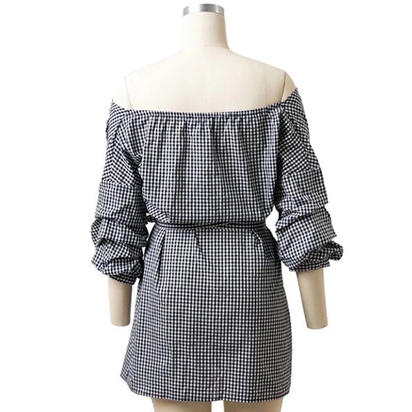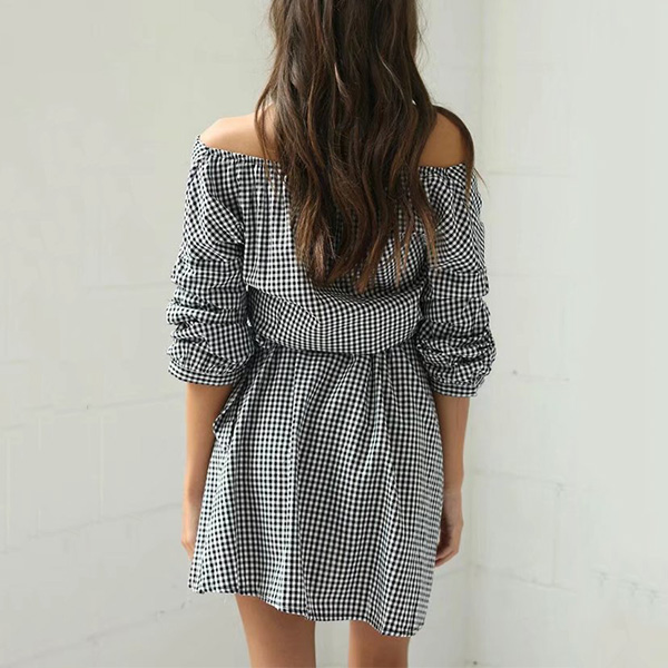 Be a trendsetter with the help of this plaid dress. Plaid style,comes with an off-shoulder wide neckline,lantern sleeve