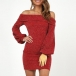 finished with lantern sleeve,off-shoulder boat neck and a fit silhouette design,this dress can showcase your