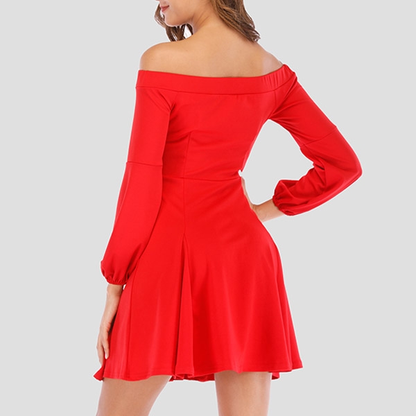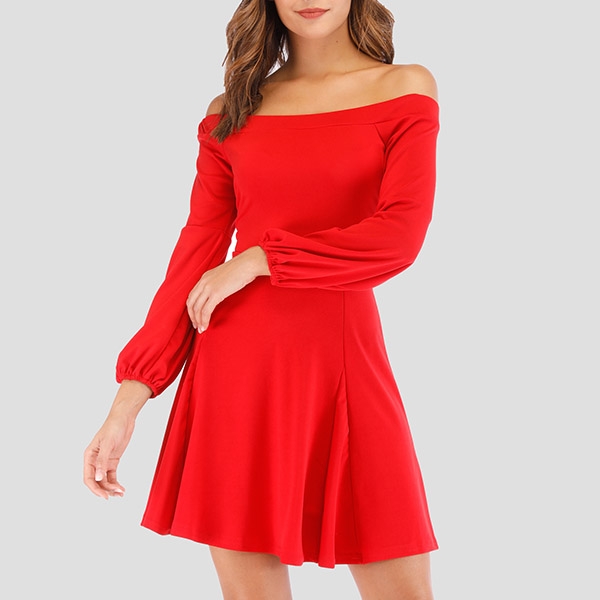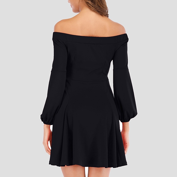 Solid color style,the off-shoulder boat neck and lantern sleeve design are the highlights.