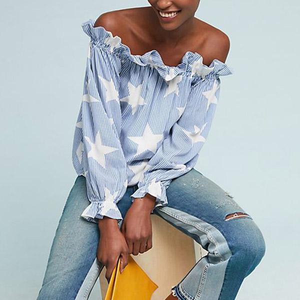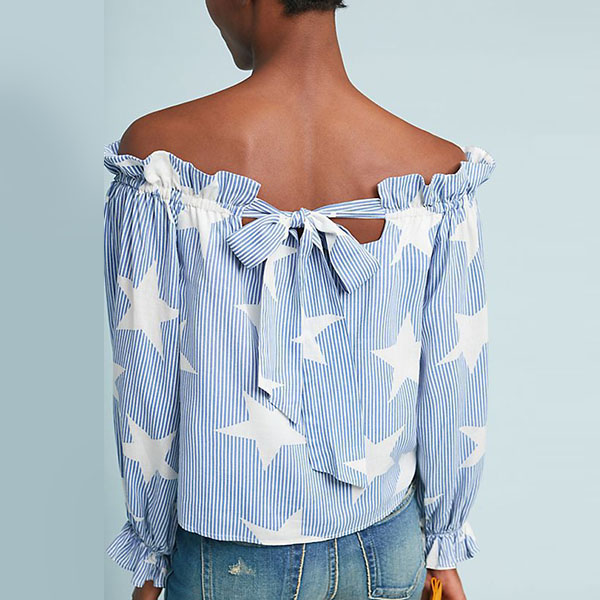 Inject a dash of sexy and feminine flavor to your overall look with this blouse. Striped style,the off-shoulder